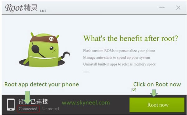 Step 4: Root kit will automatically detect your Device, Now click on “Root Now”.