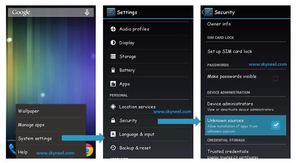 Step 3: Go to setting >>> tap on security >>> tick on the unknown sources box (After install un-tick this option doesn’t forget it).