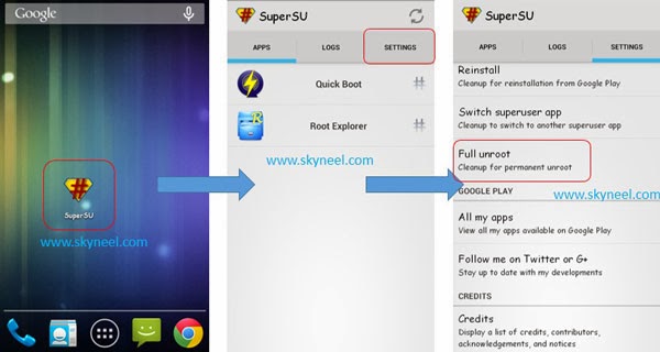 It is must for you to know how to unroot your phone. When you feel that you don’t want rooted phone, then you can easily un-install the root app and unroot your phone. Here are simple steps to unroot your device. You can also see an unroot process in this image.